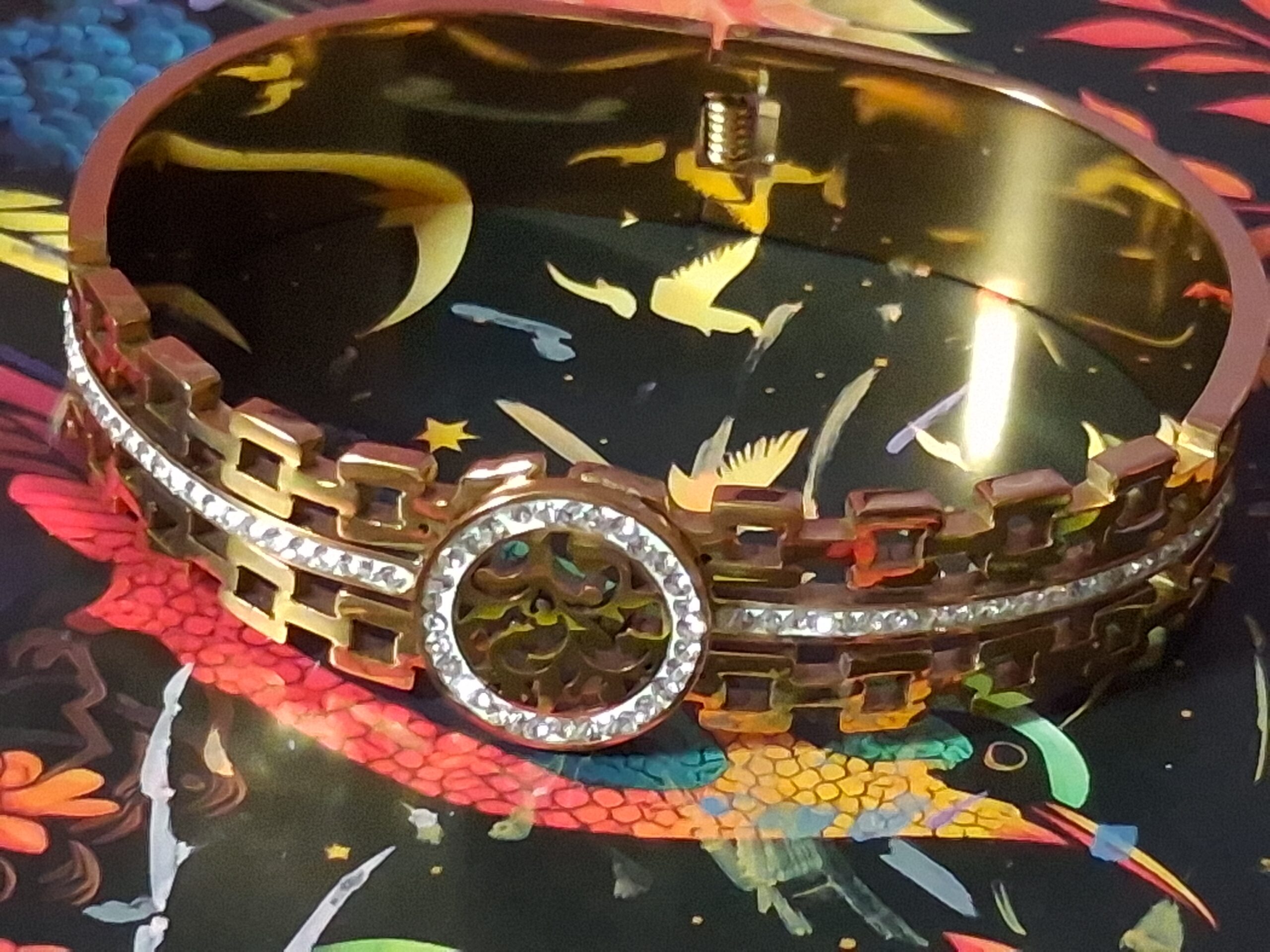 & Free ShippingBracelet pour femme en acier inoxydable dore avec ouverture sur le dessus