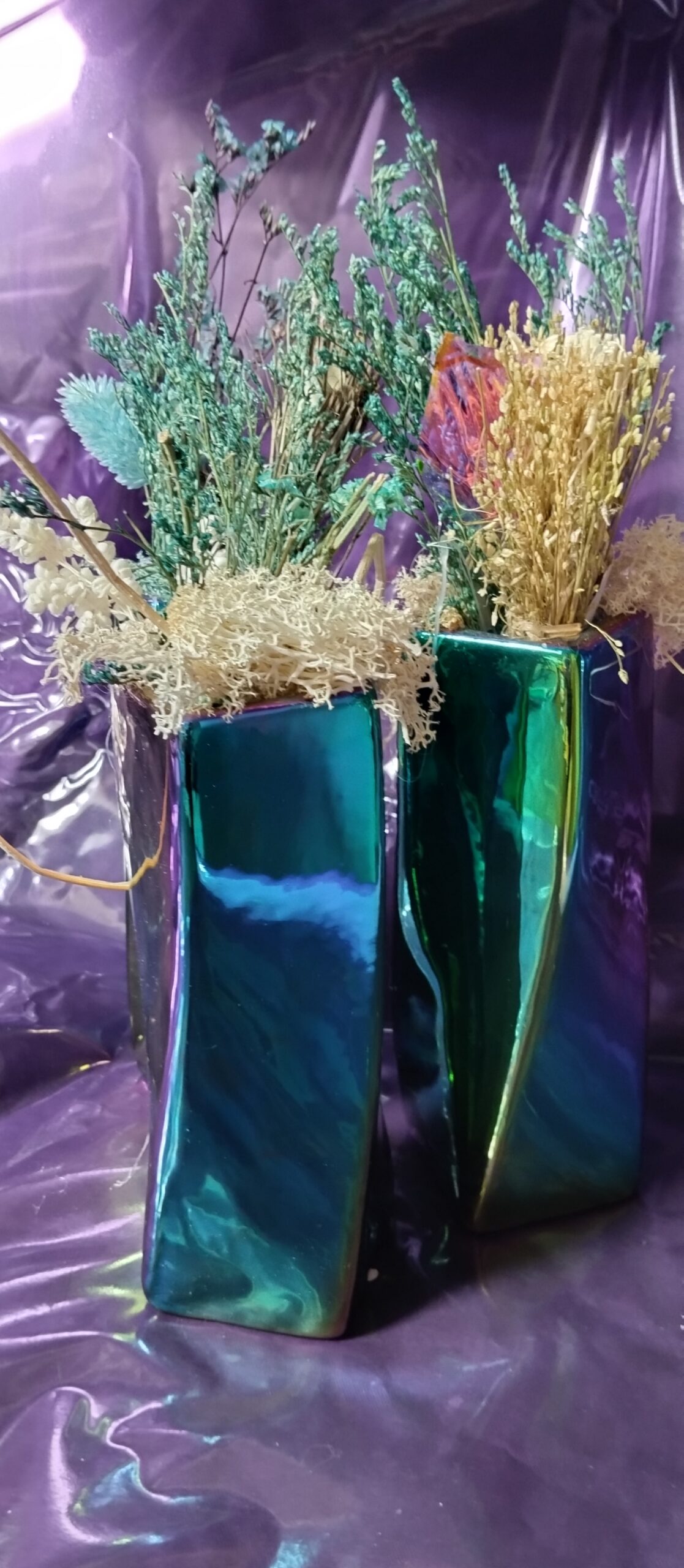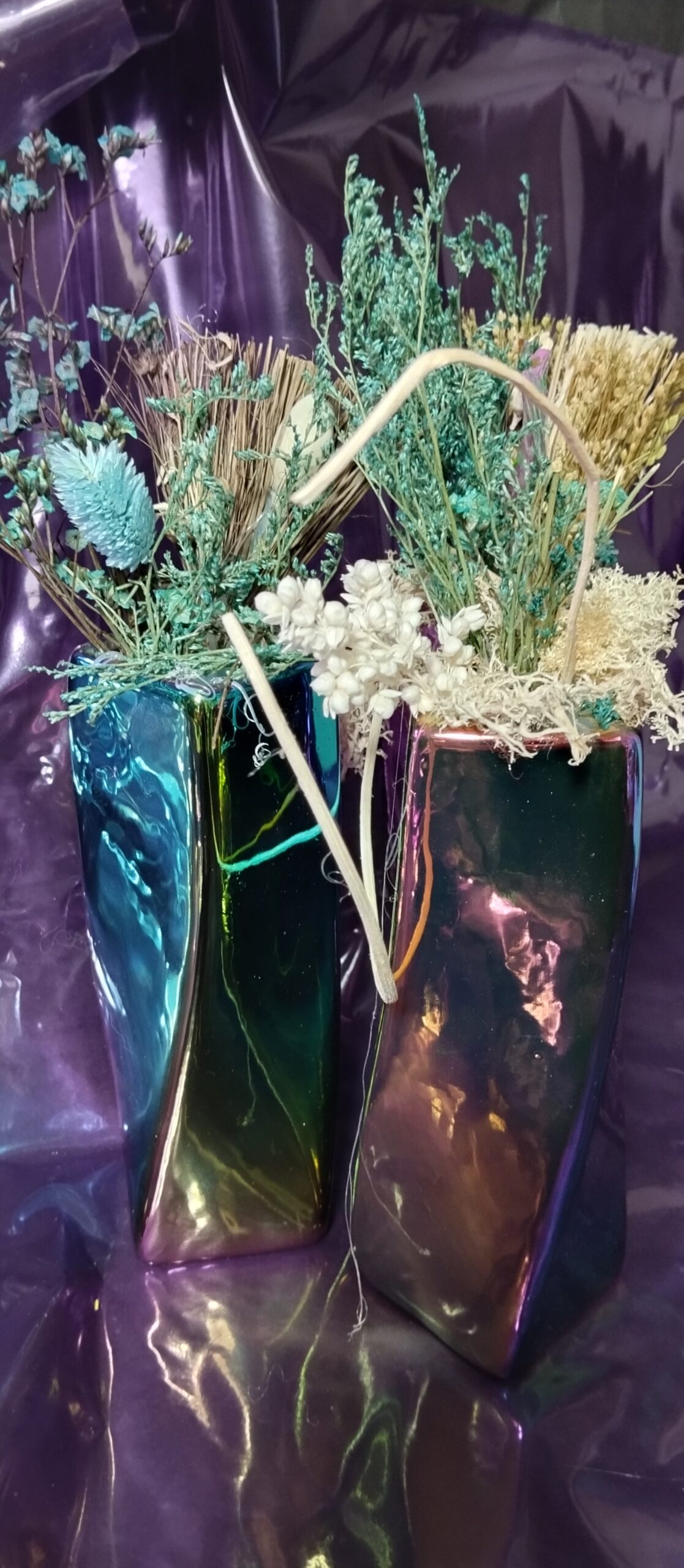 Decoration florale en fleurs sechees dans un vase